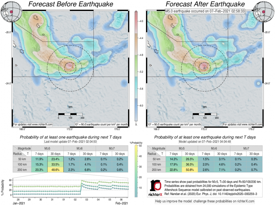 Earthquake Forecast following M5 southeast of Loyalty Islands