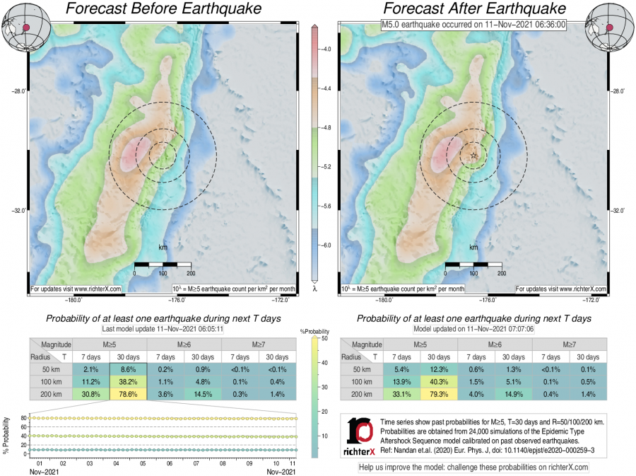 Earthquake Forecast following M5 offshore Kermadec Islands