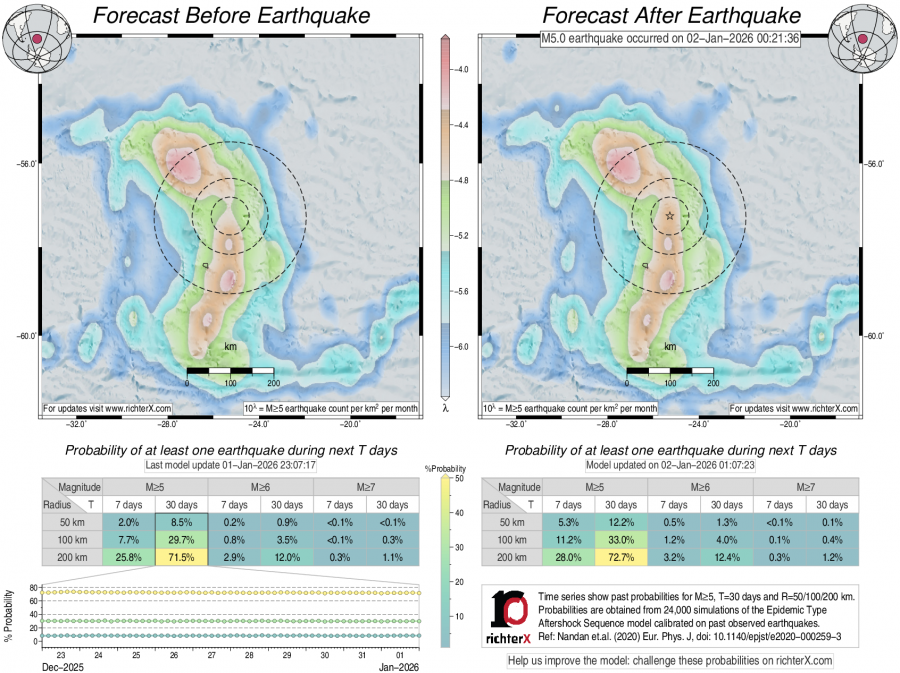 Earthquake Forecast following M5 in South Sandwich Islands