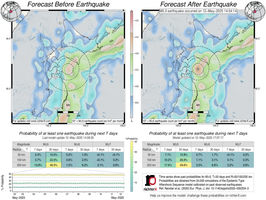 Earthquake Forecast following M5.3 in Hokkaido, Japan