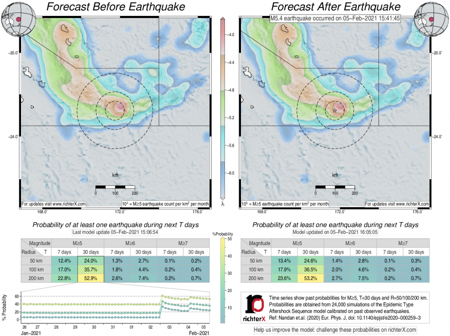 Earthquake Forecast following M5.4 southeast of Loyalty Islands