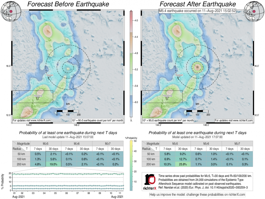 Earthquake Forecast following M5.4 offshore Mariana Islands