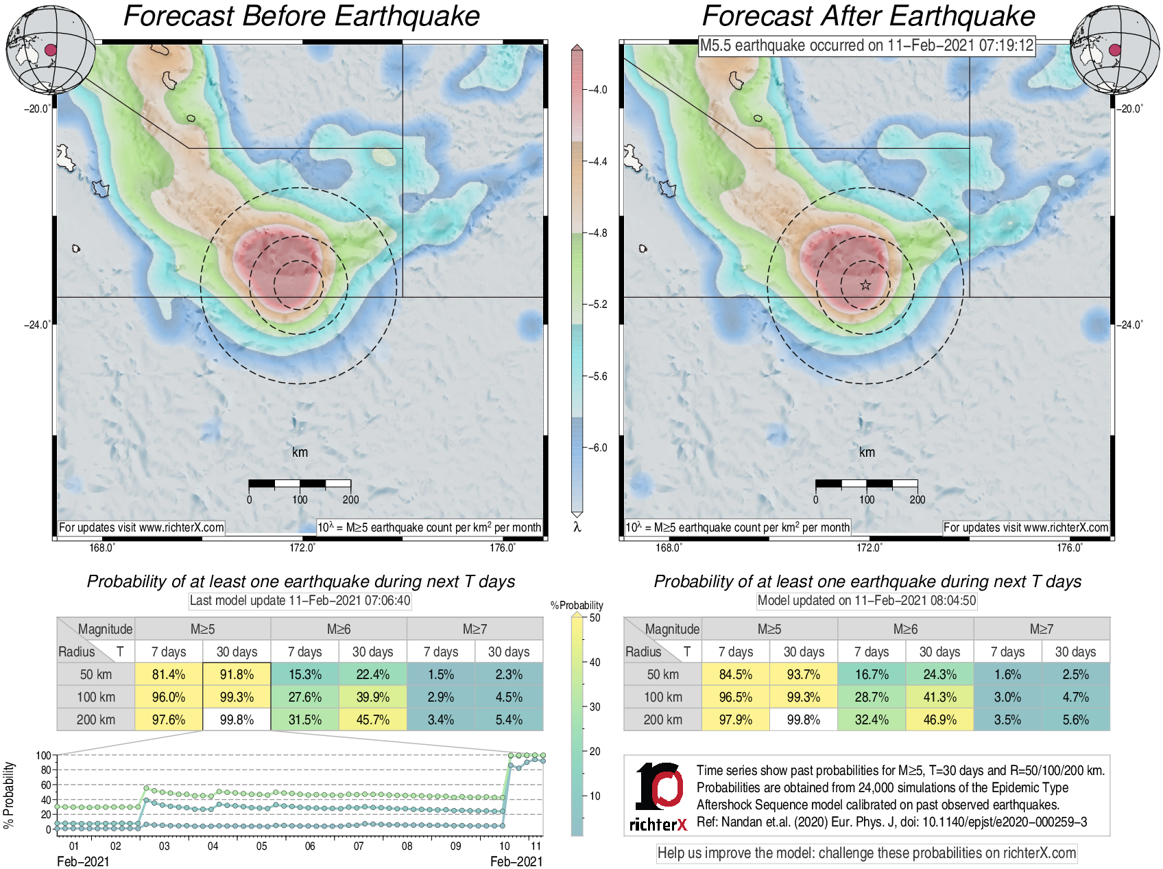 Earthquake Forecast following M5.5 southeast of Loyalty Islands