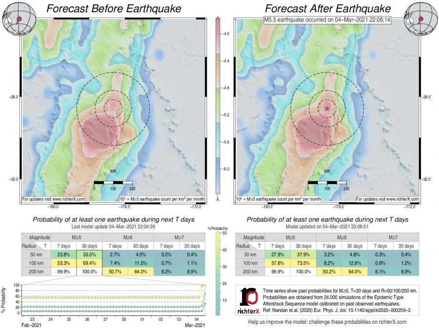 Earthquake Forecast following M5.5 offshore Kermadec Islands