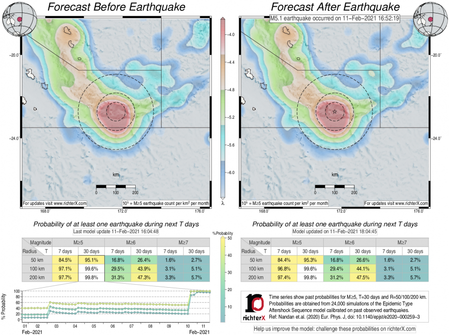 Earthquake Forecast following M5.1 southeast of Loyalty Islands