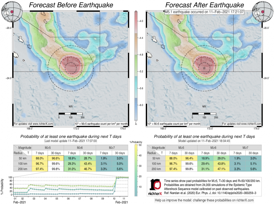 Earthquake Forecast following M5.1 southeast of Loyalty Islands