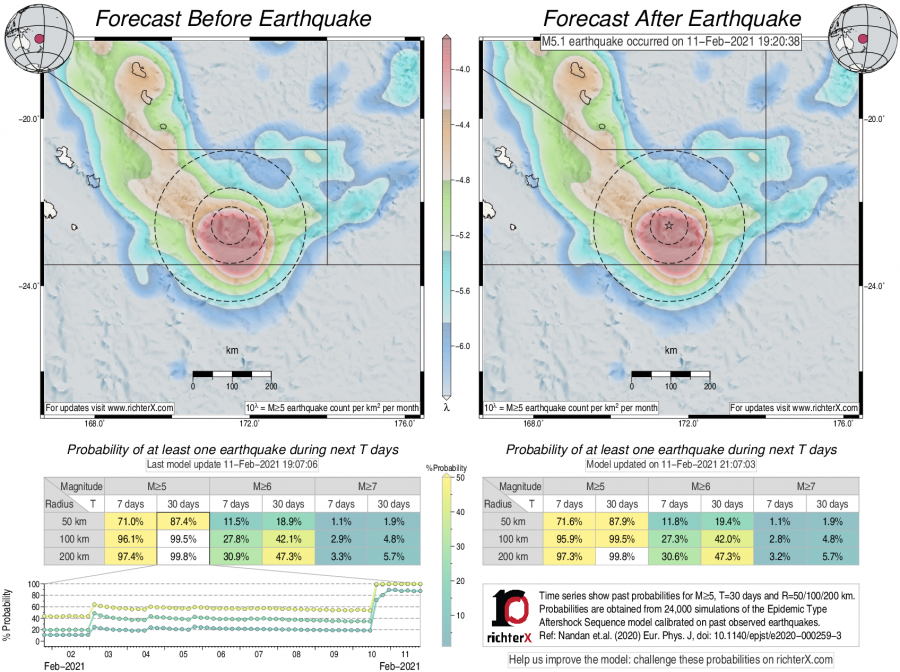 Earthquake Forecast following M5.1 southeast of Loyalty Islands