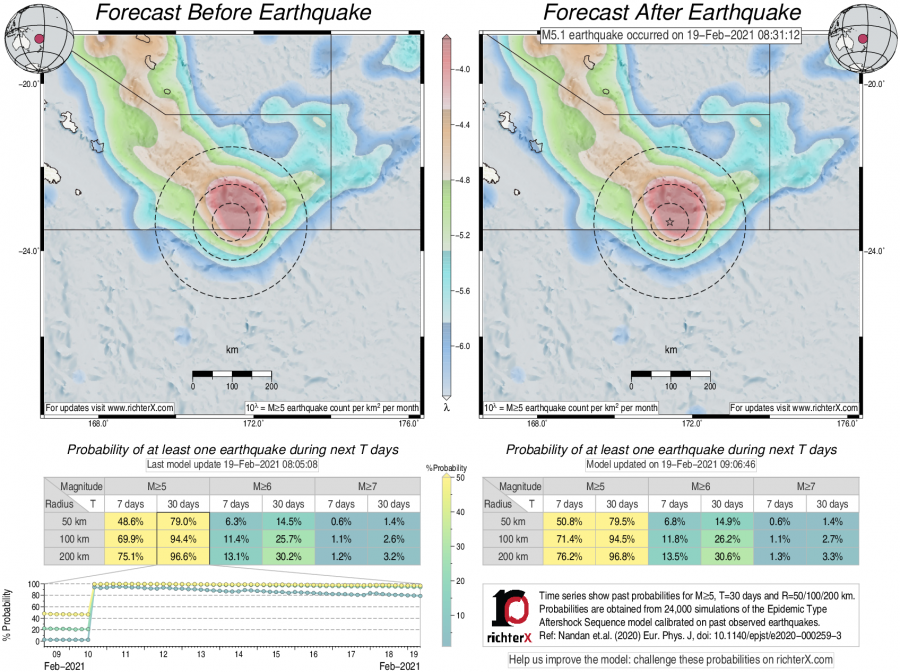 Earthquake Forecast following M5.1 southeast of Loyalty Islands