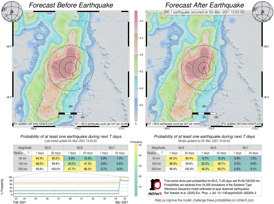 Earthquake Forecast following M5.1 offshore Kermadec Islands