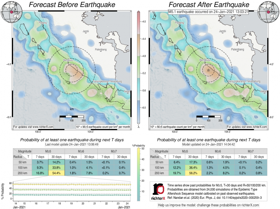 Earthquake Forecast following M5.1 in southern Sumatra, Indonesia