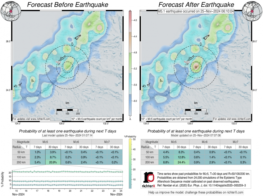 Earthquake Forecast following M5.1 in Ryukyu Islands, Japan