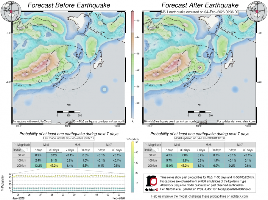 Earthquake Forecast following M5.1 in Kepulauan Tanimbar, Indonesia