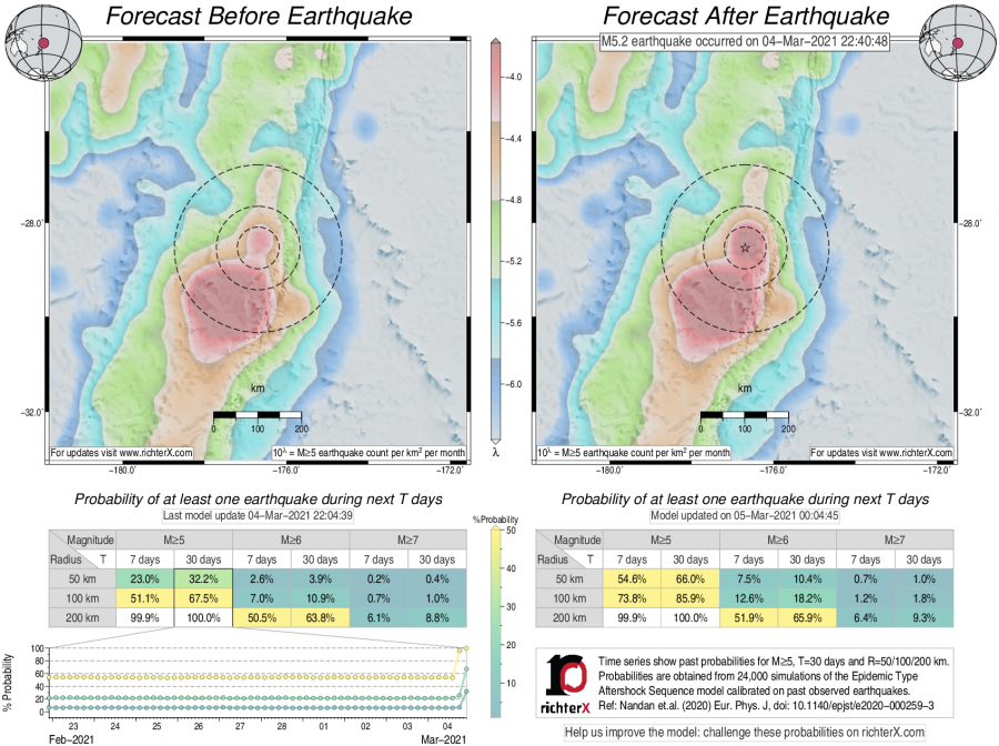 Earthquake Forecast following M5.19 offshore Kermadec Islands