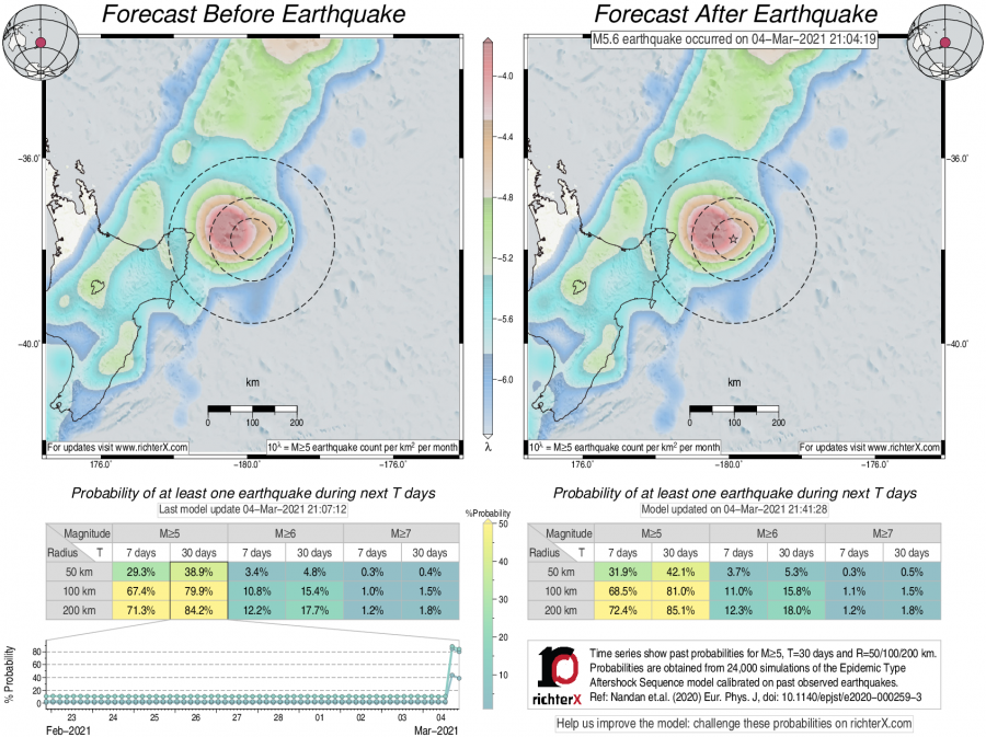 Earthquake Forecast following M5.6 east of the North Island of NZ