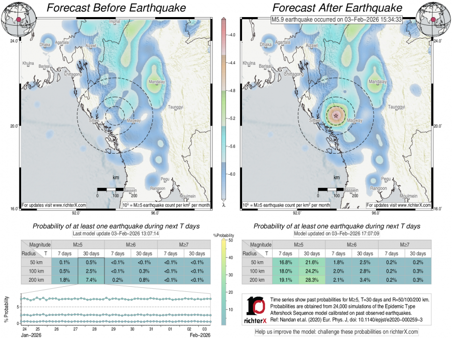 Earthquake Forecast following M5.9 in Myanmar