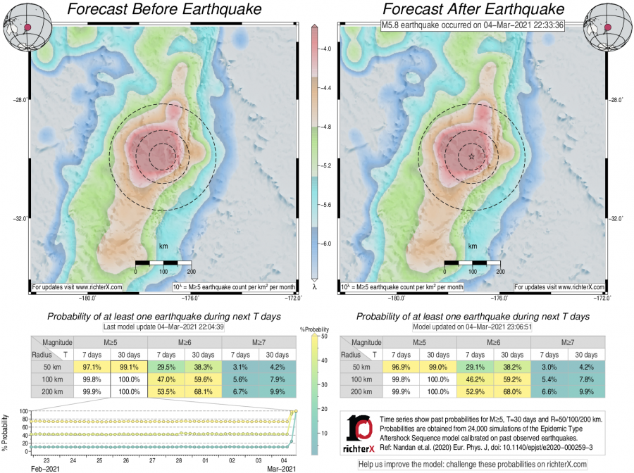 Earthquake Forecast following M5.8 in Kermadec Islands, New Zealand