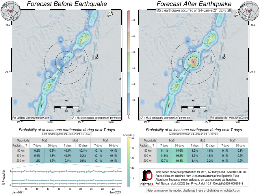 Earthquake Forecast following M5.8 in Auckland Islands, New Zealand