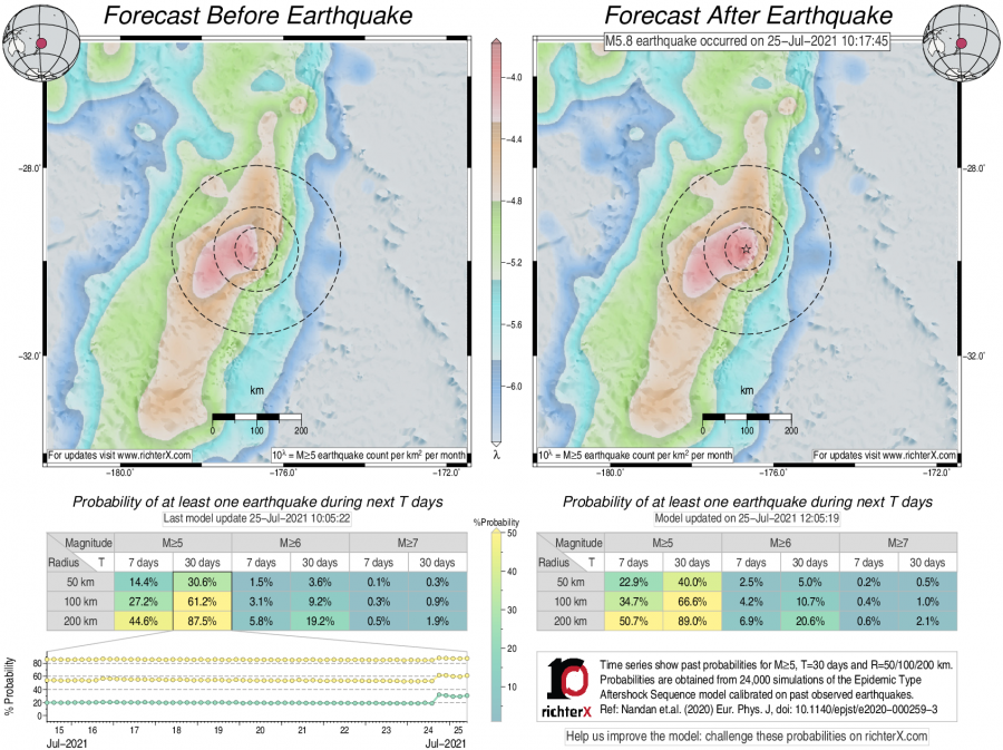 Earthquake Forecast following M5.8 offshore Kermadec Islands