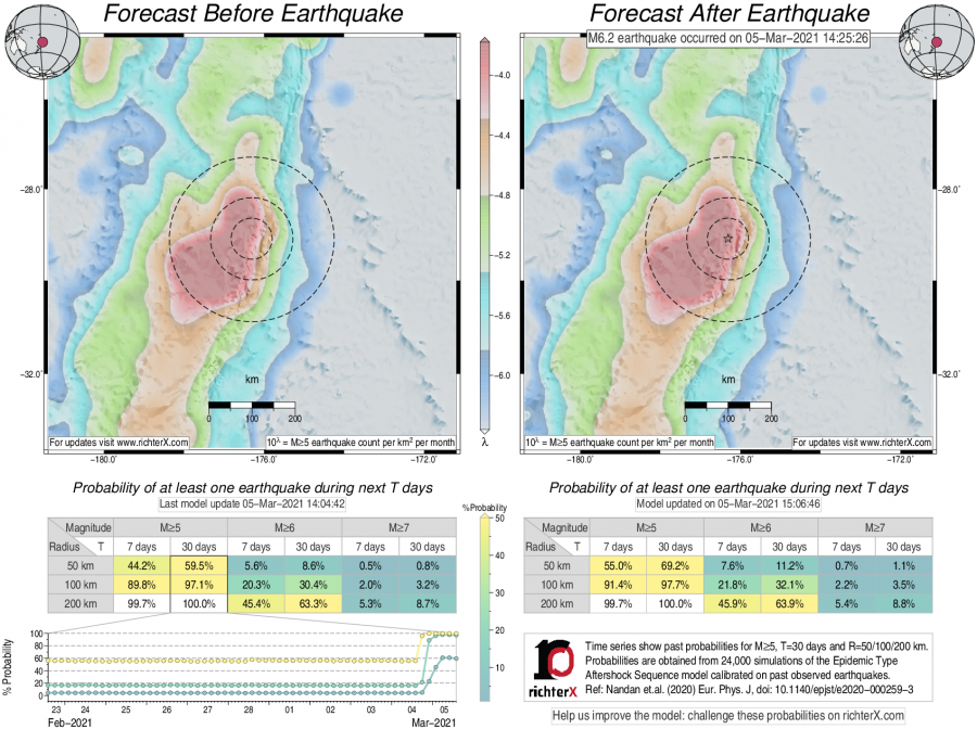 Earthquake Forecast following M6.2 offshore Kermadec Islands