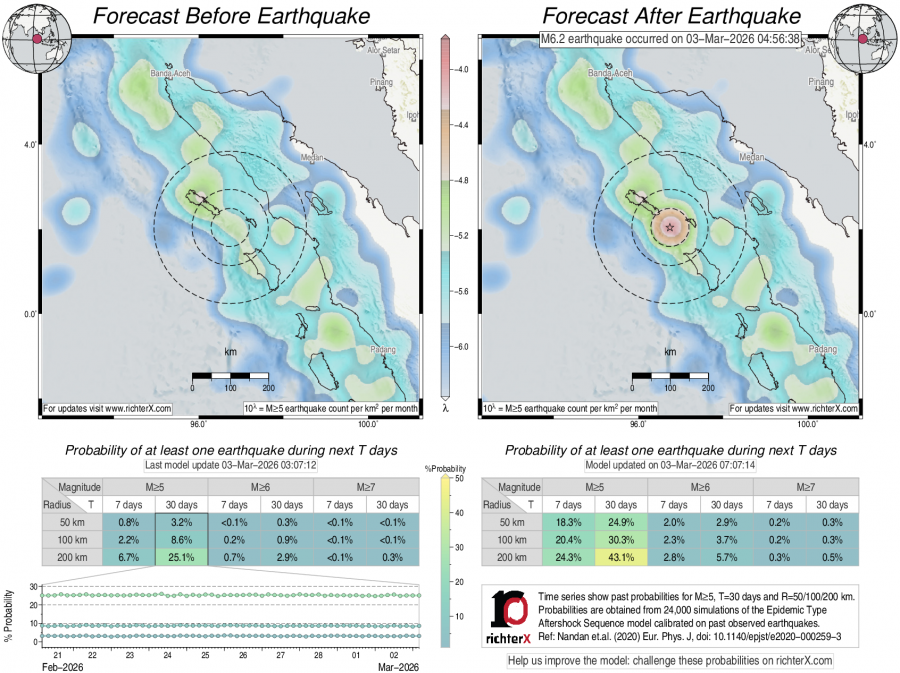 Earthquake Forecast following M6.2 in northern Sumatra, Indonesia