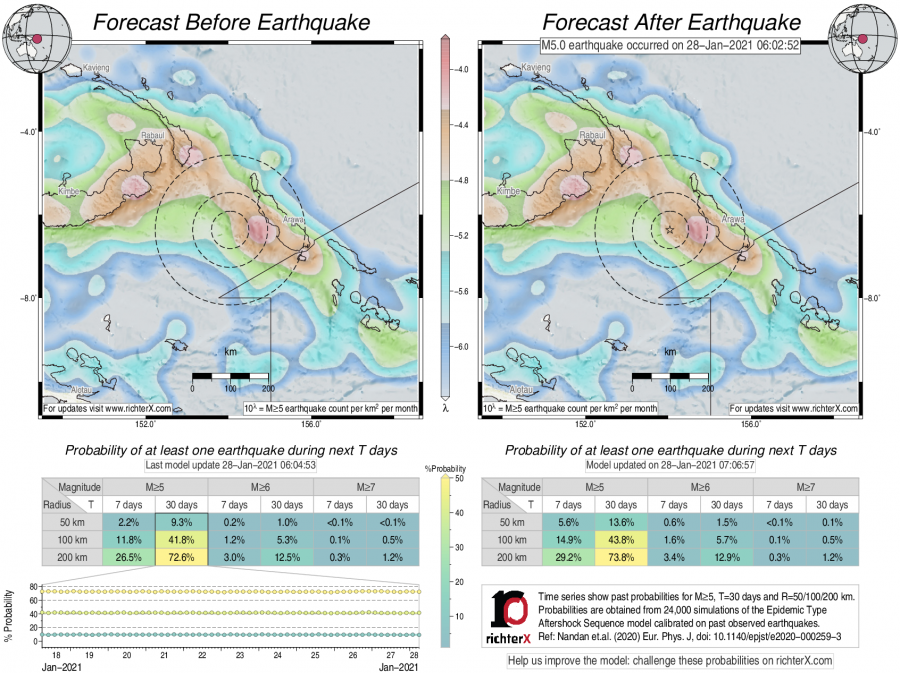 Earthquake Forecast following M5 in Solomon Islands