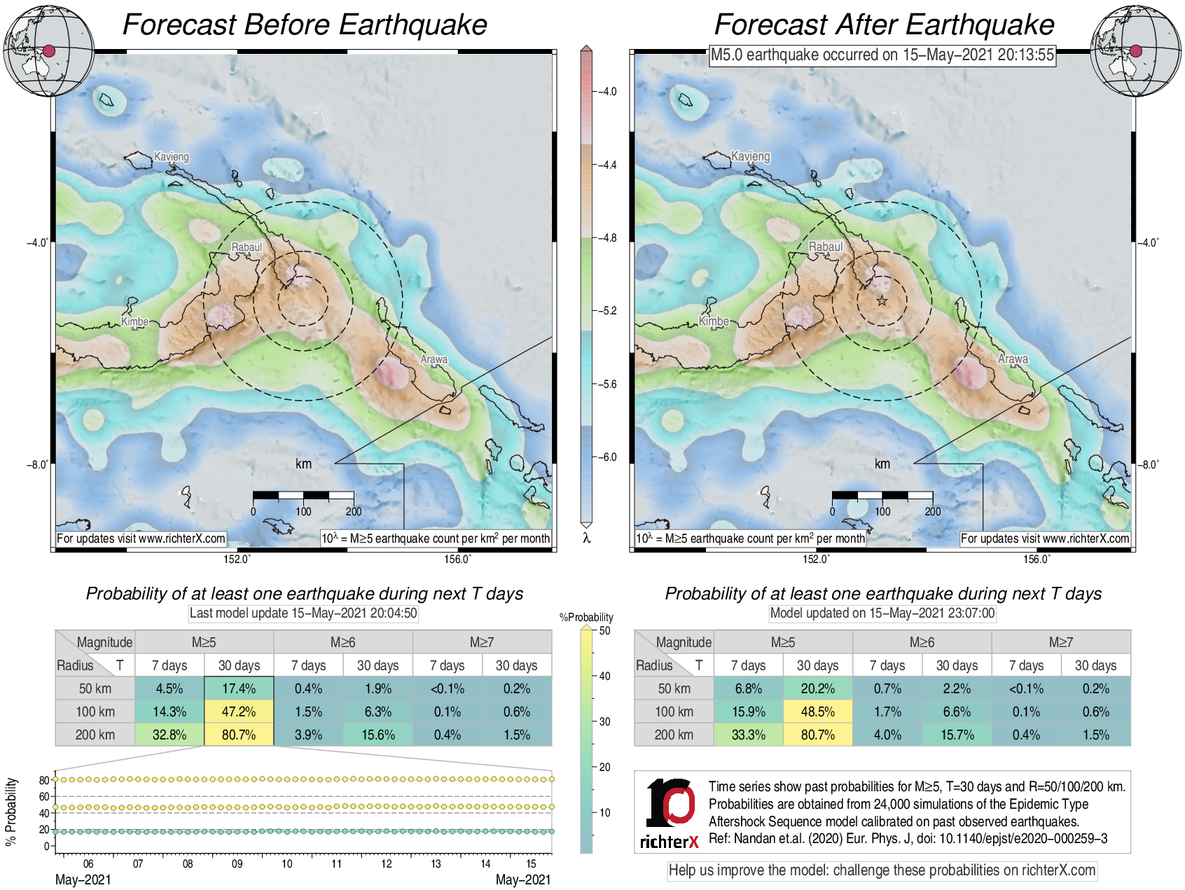 Earthquake Forecast following M5 in New Ireland, Papua New Guinea