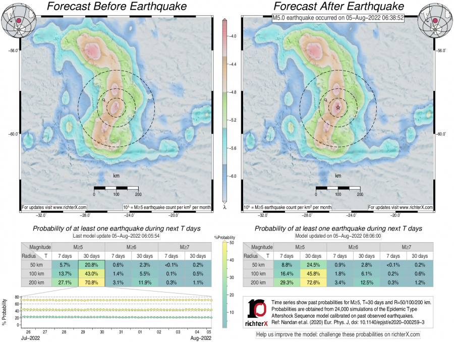 Earthquake Forecast following M5 in South Sandwich Islands