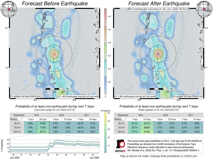 Earthquake Forecast following M5 in Nicobar Islands, India