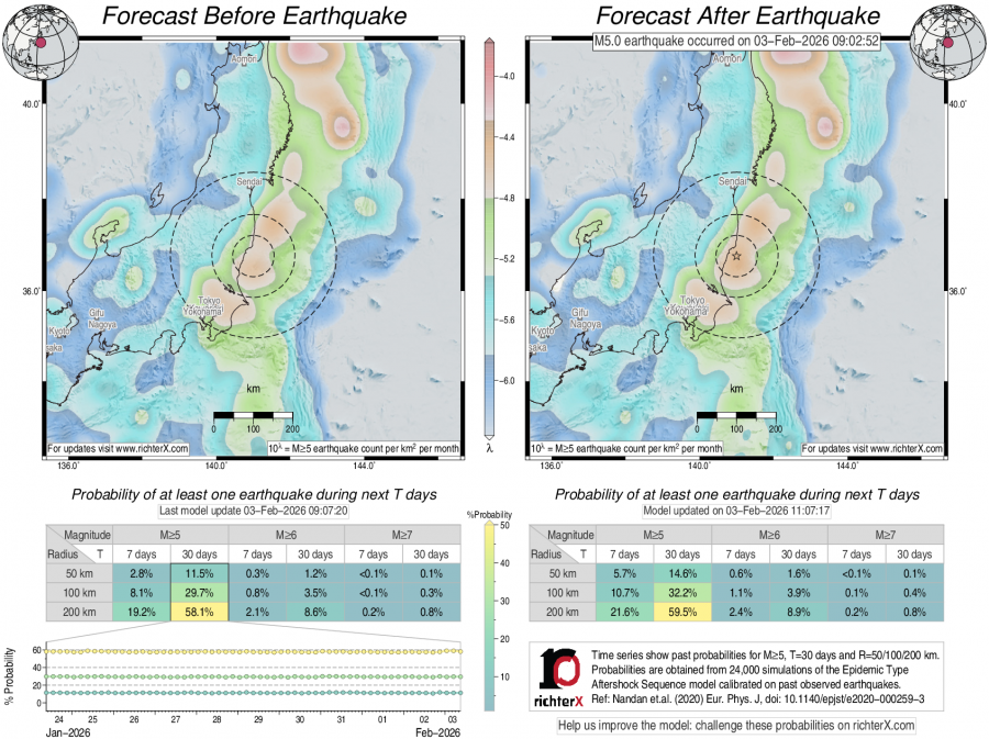 Earthquake Forecast following M5 offshore east Honshu, Japan