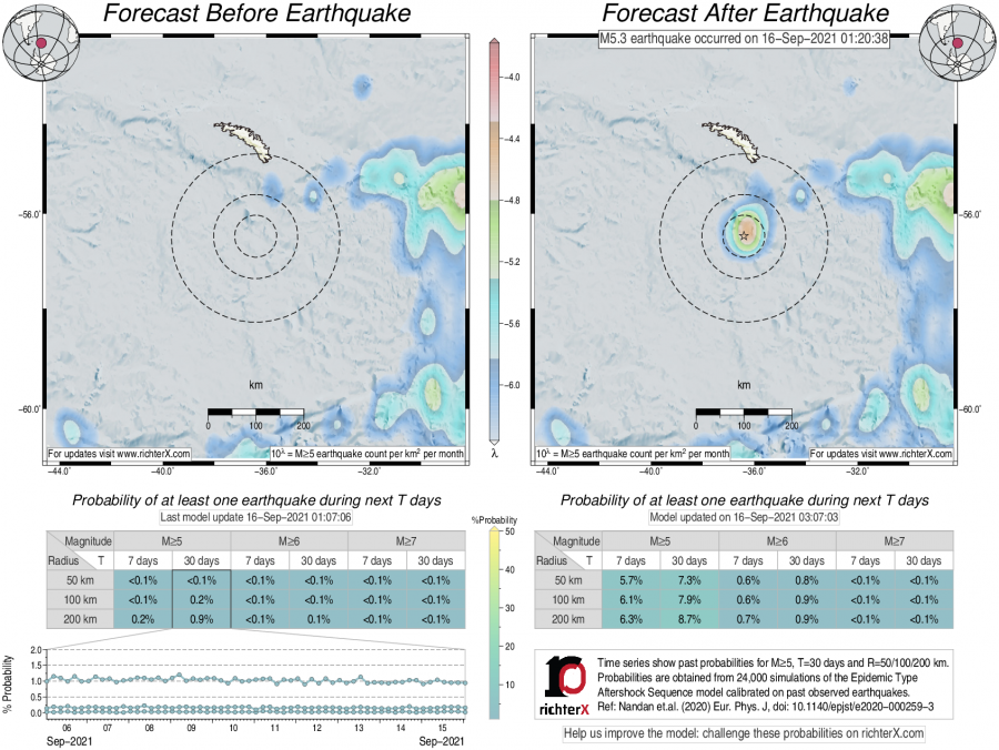 Earthquake Forecast following M5.3 in South Georgia Island