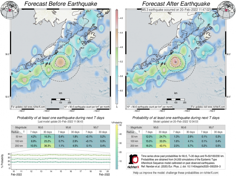 Earthquake Forecast following M5.3 in Alaska Peninsula