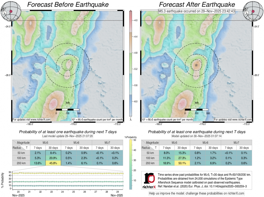Earthquake Forecast following M5.3 offshore Kermadec Islands