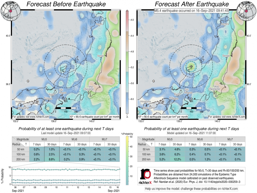 Earthquake Forecast following M5.4 offshore west Honshu, Japan