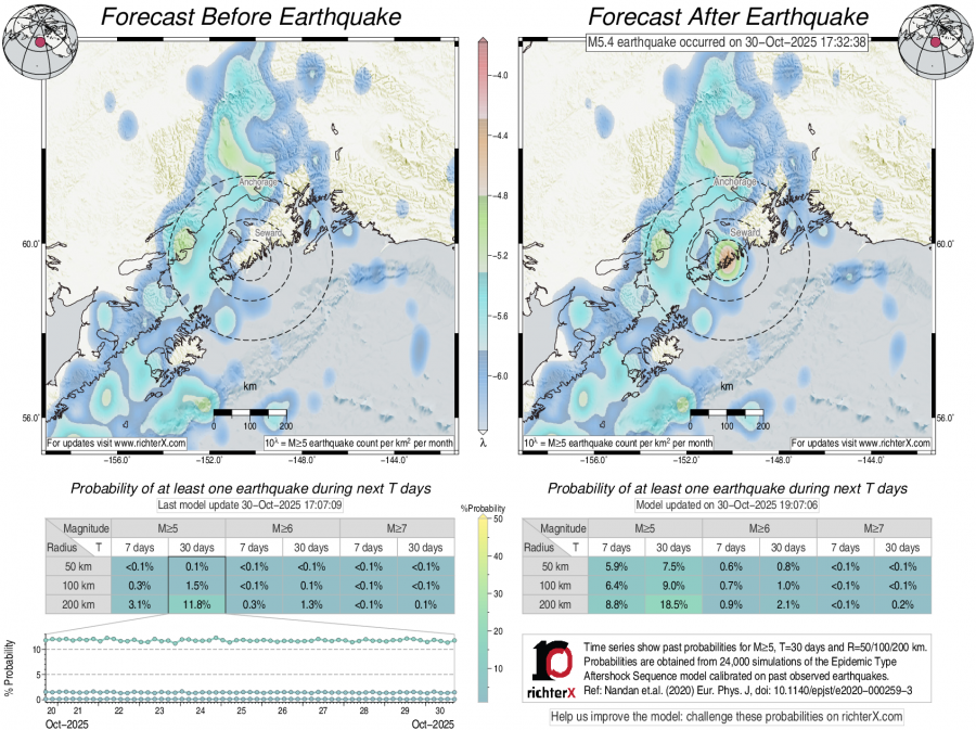 Earthquake Forecast following M5.4 in Kenai Peninsula, Alaska