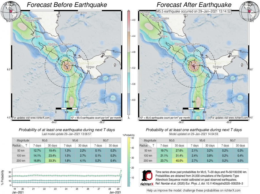 Earthquake Forecast following M5.5 in Costa Rica