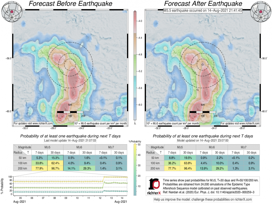 Earthquake Forecast following M5.5 in South Sandwich Islands