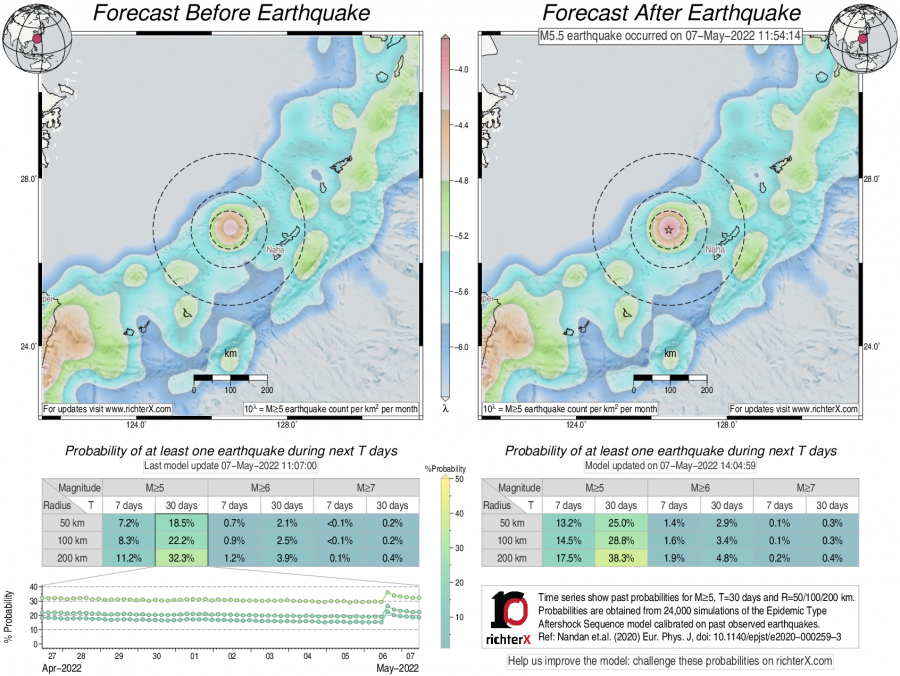 Earthquake Forecast following M5.5 in Ryukyu Islands, Japan