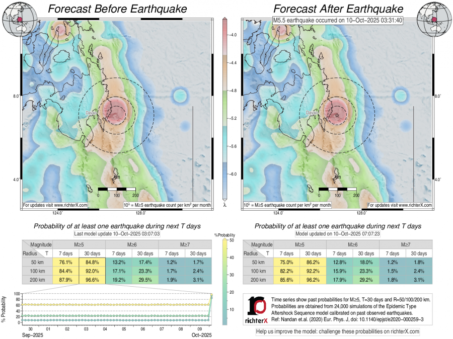 Earthquake Forecast following M5.5 in Mindanao, Philippines