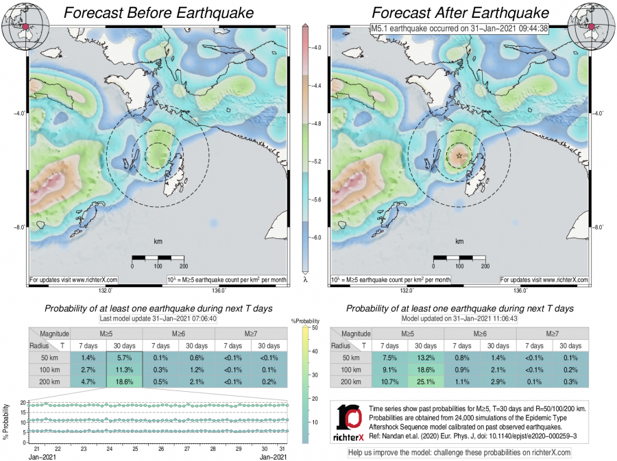 Earthquake Forecast following M5.1 in Kepulauan Aru, Indonesia