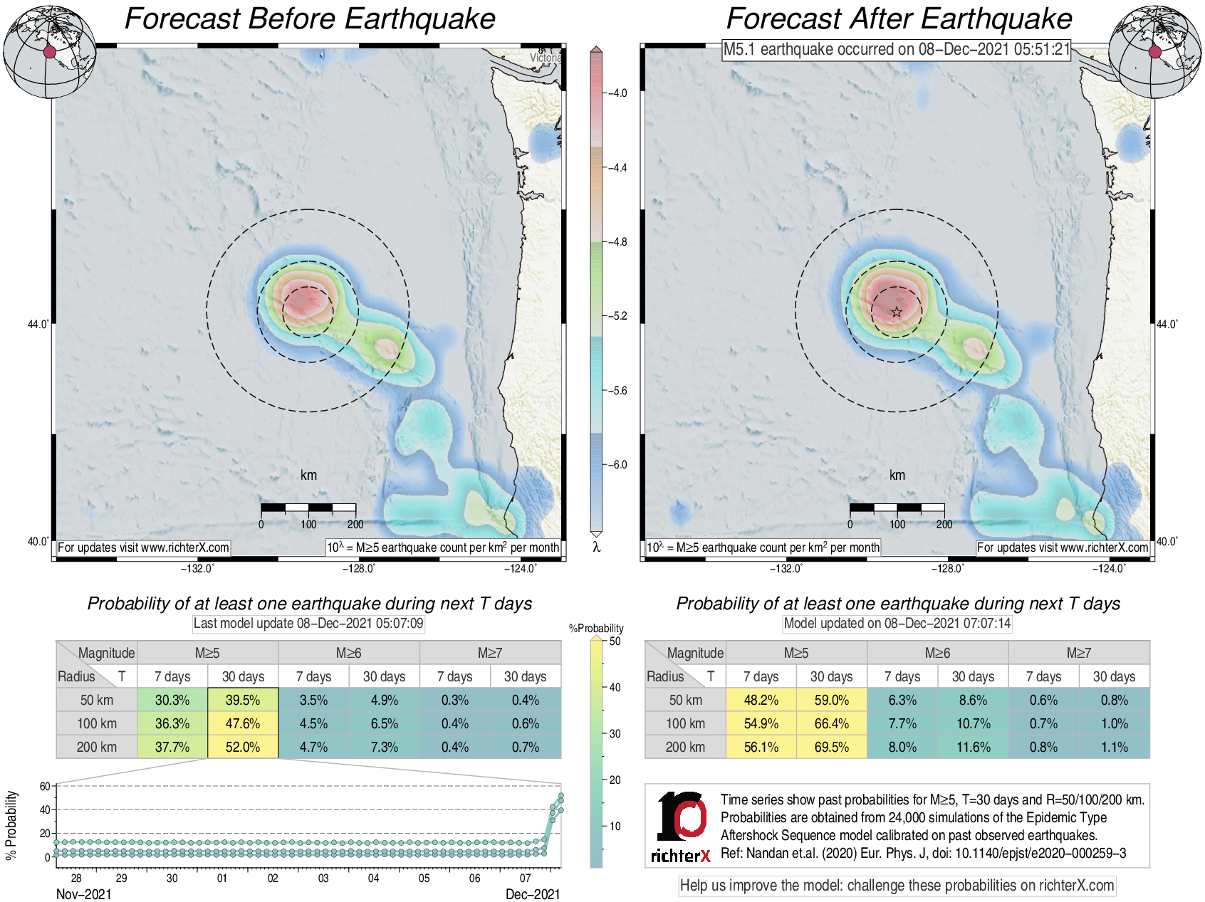 Earthquake Forecast following M5.1 offshore Oregon, USA