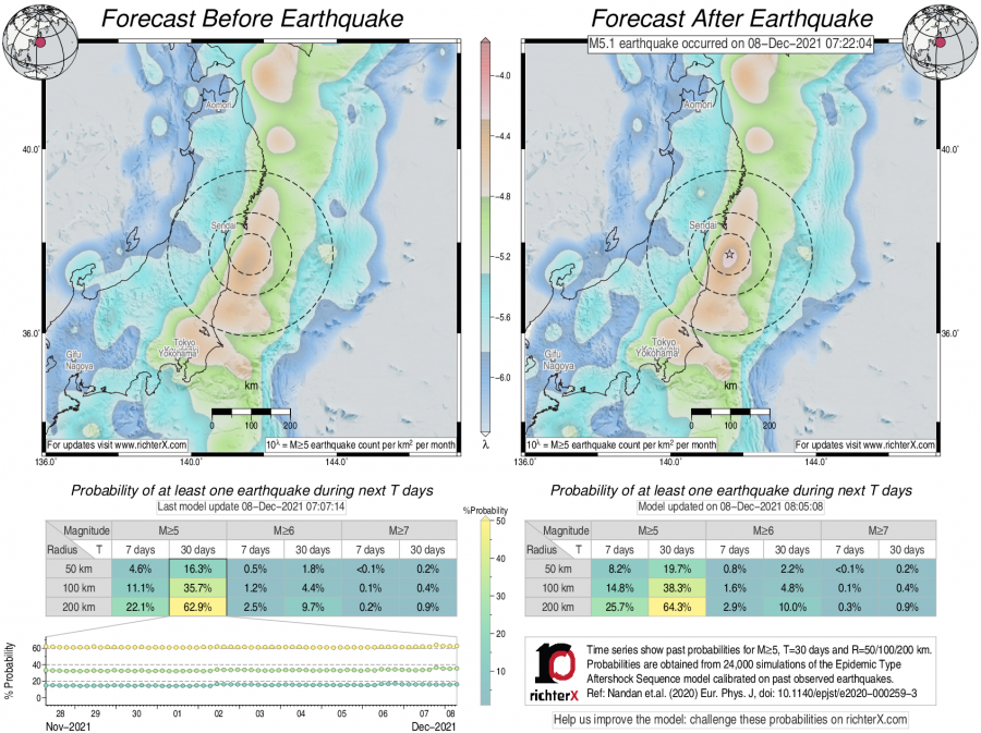 Earthquake Forecast following M5.1 offshore east Honshu, Japan