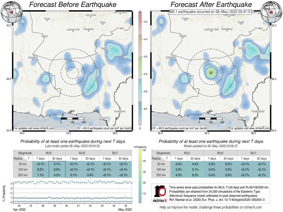 Earthquake Forecast following M5.1 in southwestern Pakistan