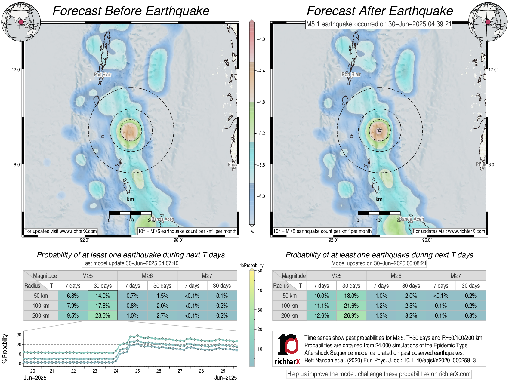 Earthquake Forecast following M5.1 in Nicobar Islands, India
