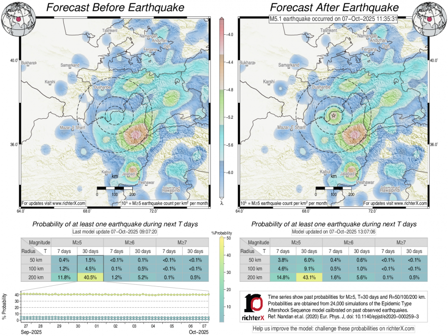 Earthquake Forecast following M5.1 in Afghanistan-Tajikistan border