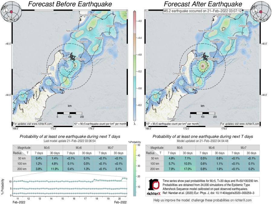 Earthquake Forecast following M5.19 in South Island of New Zealand