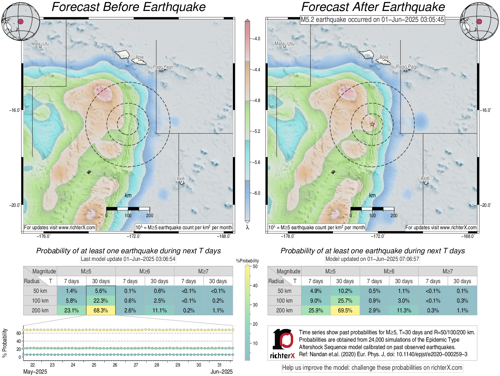 Earthquake Forecast following M5.19 offshore Samoa Islands