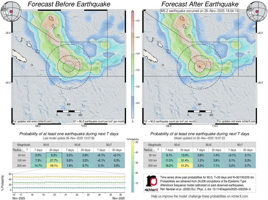 Earthquake Forecast following M5.19 southeast of Loyalty Islands
