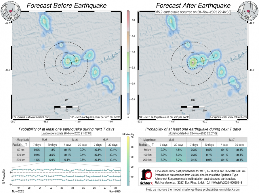 Earthquake Forecast following M5.19 in southern Mid-Atlantic Ridge