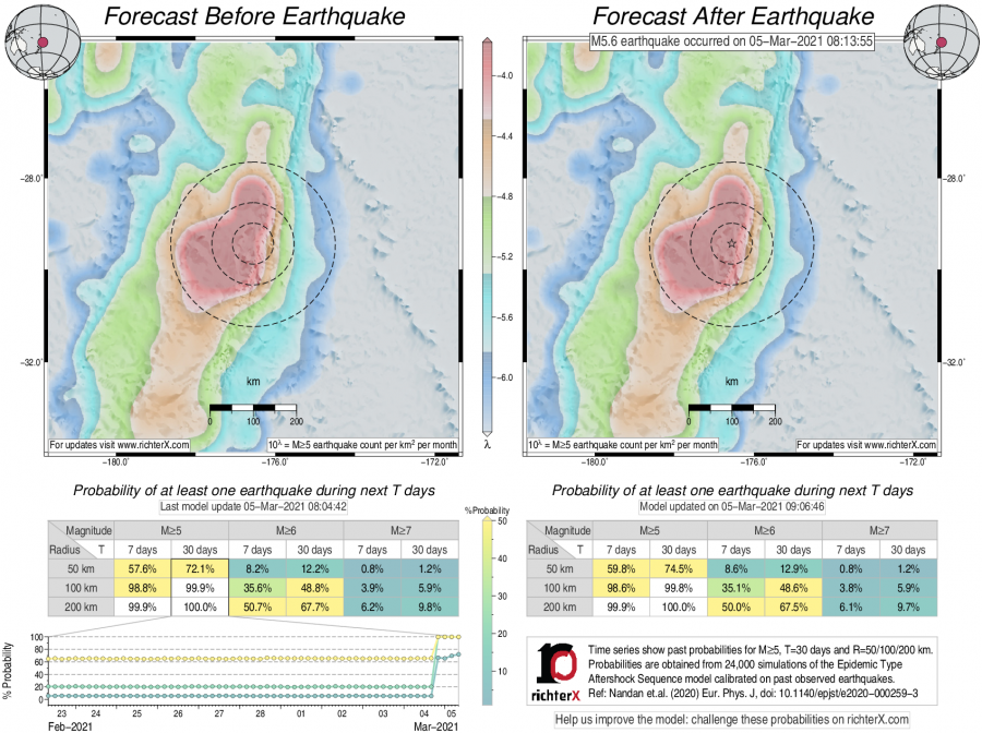 Earthquake Forecast following M5.6 offshore Kermadec Islands