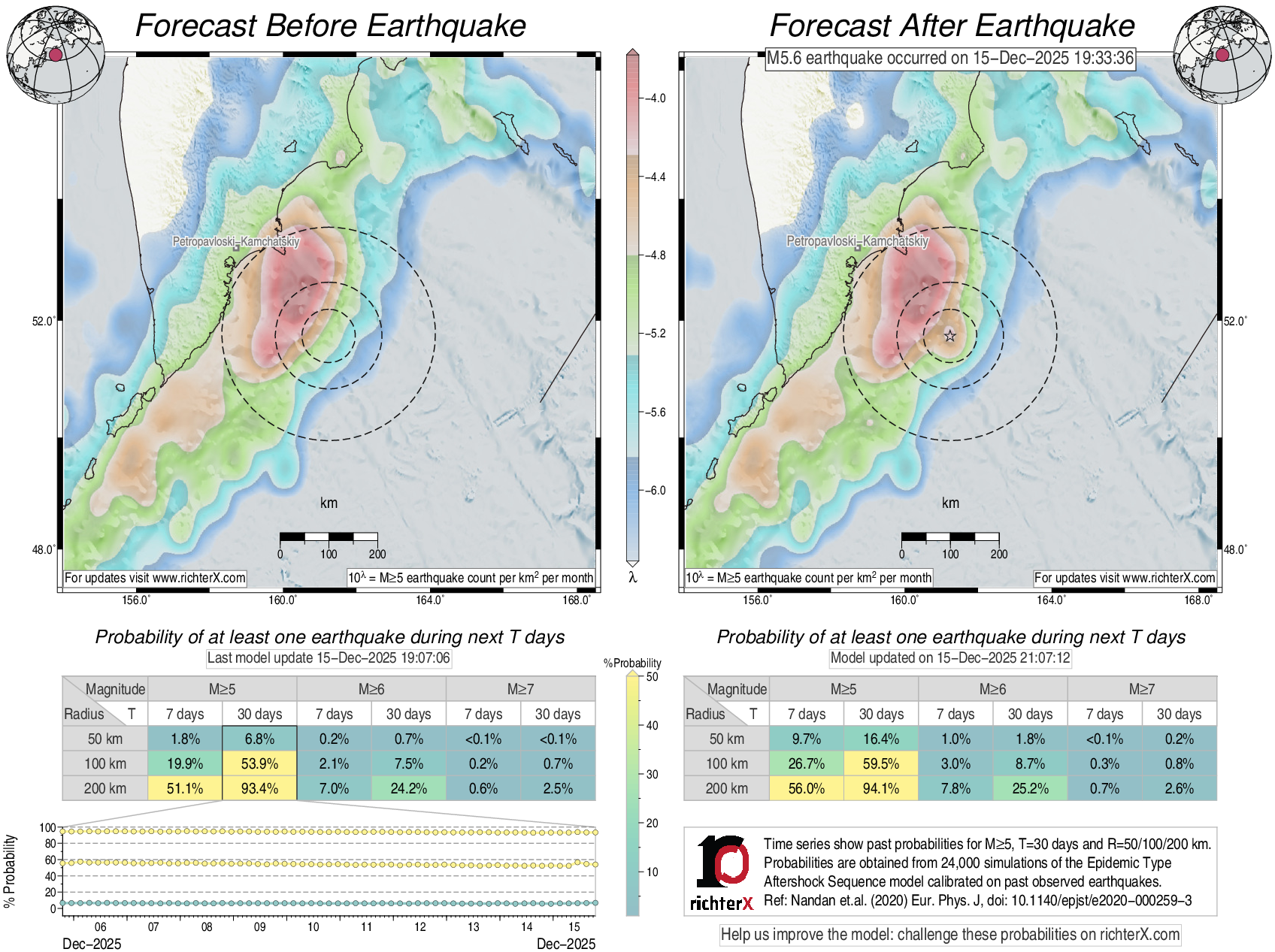 Earthquake Forecast following M5.6 offshore east Kamchatka